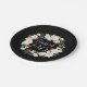 Add a stylish touch to your graduation party with floral graduation paper plates. The custom graduation paper plates feature the phrase "Class of 2025" in a white calligraphy script encircled by a wreath of white magnolias, blush pink roses, cotton blooms, and green leaves.