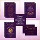 Invite your loved ones to a radiant Diwali celebration with this elegant party invitation, featuring a deep purple background, glowing golden string lights, and traditional oil lamps. The front showcases refined typography and festive charm, while the reverse side adds a luxurious touch with a rich mandala pattern that enhances the cultural essence of the occasion.