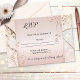 A pretty wedding RSVP card with rose gold floral swirls and a blush pink design on a marble background with light sparkles. This RSVP card matches invitations and is part of a wedding collection.