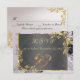 Elegant Marble, Grey, Gold Frame, Gold Heart RSVP Card features a grey center on a black and white marble background, framed with gold roses and leaves, embellished with a gold scroll heart. The back has details for the recipient to fill out. Designed to coordinate with the "Elegant Marble, Gold Leaves Frame & Scroll Heart" Wedding Collection. To change details, click «Personalize». To move the text or change the text size, font, or color click «Click to customize further»