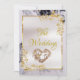 This elegant wedding announcement features a white satin center on a black and white marble background, framed with gold roses and leaves, embellished with a gold scroll heart. Designed to coordinate with the "Elegant Marble, Gold Leaves Frame & Scroll Heart" Wedding Collection. To change details, click «Personalize». To move the text or change the text size, font, or color click «Click to customize further»