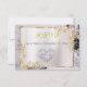 Elegant Marble, White, Gold Frame, Silver Heart RSVP Card features a white satin center on a black and white marble background, framed with gold roses and leaves, embellished with a silver scroll heart. The back has details for the recipient to fill out. Designed to coordinate with the "Elegant Marble, Gold Leaves Frame & Scroll Heart" Wedding Collection. To change details, click «Personalize». To move the text or change the text size, font, or color click «Click to customize further»
