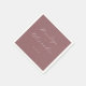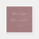 This elegant wedding napkin design features a sophisticated maroon background with white text, creating a striking contrast. The layout is minimalist and refined, showcasing two names in flowing cursive script connected by a simple "and," followed by a date in clean sans-serif typography. The ample negative space emphasizes clarity and elegance, making it perfect for formal events. Its classic style conveys a mood of formality and celebration, ideal for weddings or significant announcements.