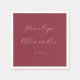 This elegant wedding napkin design features a simple, sophisticated layout with a rich maroon background and light cream text. The names "Penelope" and "Alexander" are written in graceful cursive script, connected by the word "AND," creating a timeless and formal look. The date is presented in a clean, understated font at the bottom, enhancing readability without detracting from the overall elegance. Perfect for adding a touch of class to your wedding celebration, this design exudes sophistication and timelessness.