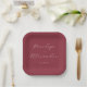 This elegant wedding plate features a deep maroon background with light cream-colored text, creating a sophisticated and classic look. The design showcases an ornate script font for the names and a clean sans-serif font for the date, emphasizing clarity and readability. Its minimalistic layout focuses on typography, making it perfect for formal events like weddings or anniversaries. The modern yet timeless style conveys elegance and formality, ideal for celebrating significant life moments.