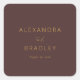 This elegant wedding sticker features a minimalistic design with a rich maroon background and gold-yellow text, creating a luxurious and sophisticated look. The typography combines a formal serif font for the names with a cursive script for "and," adding an element of personal elegance. The clean layout focuses on readability and balance, making it perfect for marking special moments. Ideal for weddings or formal events, this sticker exudes classic charm and understated refinement.