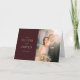 This elegant wedding thank you card features a sophisticated split design with a rich maroon background on one side and a warm, sunlit photo area on the other. The typography is stylish and modern, complementing the overall classic yet contemporary aesthetic. Soft pastel tones in the floral bouquet add a touch of romance and warmth to the design. Perfect for expressing gratitude after a special celebration, this card captures a timeless elegance that will resonate beautifully with your loved ones.