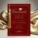 Send your family and friends an elegant college graduation announcement for any degree. This design template features a maroon red background with faux gold calligraphy, a thin double gold border, and gold grad cap. Personalise with your graduation details. Designed by ©Susan Coffey.
