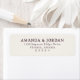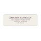 This return address label features a minimalist and elegant design with a clean, vertically oriented layout. The color palette includes a deep maroon text set against a light beige background, creating a sophisticated contrast. Utilizing digital typography with serif fonts, the design emphasizes clarity and formality, making it ideal for official communications or announcements. Its simple composition focuses on readability and customization, perfect for those seeking a professional yet understated look.