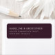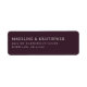This return address label features a simple, elegant layout with centred text on a deep maroon background. The design uses classic serif typography in white for high contrast and readability, creating a formal yet approachable look. Its minimalistic style focuses entirely on the textual elements without any additional graphics or illustrations, making it perfect for official communications or announcements. The clean lines and balanced composition convey sophistication and clarity, ideal for those seeking a refined aesthetic.