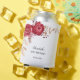 Elegant birthday can cooler, featuring a beautiful maroon rose floral design with greenery accents. Each text is customisable for your needs.