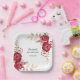 Elegant birthday paper plate, featuring a beautiful maroon rose floral design with greenery accents. Each text is customisable for your needs.