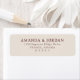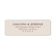 This return address label features a clean, centered layout with elegant serif typography in a deep maroon color against a light beige background. The design is minimalistic and sophisticated, emphasizing readability and formality without any additional motifs or decorative elements. Perfect for official announcements or special occasions, the customizable text allows for personalization while maintaining a timeless aesthetic. The balanced composition and ample negative space create an organized and refined look, ideal for those seeking a classic and versatile style.