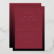 This elegant wedding invitation features a classic rectangular layout with a rich maroon background and crisp white serif typography, creating a sophisticated and formal aesthetic. The design is framed by a black border, enhancing the luxurious feel while maintaining simplicity and focus on the text. Customisable elements allow for personalisation of names, dates, and locations, making it perfect for couples seeking a timeless and refined look for their special day. The overall mood is one of celebration and tradition, ideal for an unforgettable wedding event.