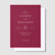 This elegant wedding invitation features a deep maroon background with a minimalist and classic design, focusing on clean typography. The layout is simple yet sophisticated, with centred text in a bold serif font that creates a formal and luxurious tone. Thin horizontal lines separate the sections, enhancing readability and visual harmony. Perfect for couples seeking a timeless and refined look, this invitation sets the mood for an unforgettable celebration.