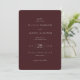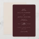 This elegant wedding invitation features a deep maroon background with a clean, modern layout that emphasizes typographic hierarchy. The design uses a mix of serif and script fonts to create a sophisticated and inviting look, perfect for formal celebrations. With ample negative space, the text is easy to read and highlights key details like the date and venue. The overall mood is classic and refined, making it ideal for couples seeking a timeless aesthetic for their special day.