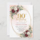 Celebrate an unforgettable milestone with this 90th birthday invitation, beautifully designed in a boho and bohemian style featuring soft watercolor blush and burgundy florals accented by an elegant gold frame. This refined design combines warmth, sophistication, and timeless charm—perfect for honoring a very special occasion.