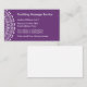 This is an elegant massage therapy business card template designed with a intricate geometric design element and purple background colour you can change. A classic simple layout allows you to customise the design to suit your taste. Designed for a professional masseuse, licensed massage therapist, or physical therapy. Shown on our rounded corner business card stock.
