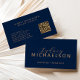 Elegant Massage Therapist QR Code Navy Blue Gold Business Card