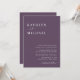Mauve Purple Modern Typography QR Code All In One Minimalist Wedding Invitation Card. Celebrate your special day with this elegant and beautiful wedding invitation card to beautify your special occasion. All the texts are pre-arranged for you to personalise easily and quickly with your own details. If you need further customisation or matching items, please email alldaybreakfastzazzle@gmail.com – we would love to help.