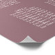 Featuring signature style names, this elegant mauve seating chart can be personalised with your wedding information in chic white lettering. Designed by Thisisnotme©