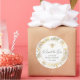 The sticker is made on wonderful paper and had no problem sticking to the bag that I purchased to put it on. I wanted to find a design that would be cute for the bride and groom and this one fit the bill as it has cute "bees" buzzing around and the wedding was taking place in a town called "Bee Cave". The packaging was great and protected the stickers. The website is easy to navigate and there are so many color choices. I had no problem finding a color that the bride was using on everything else selected. The design was adorable and there were many to choose from. You can make the figure as larger or smaller and you can place the photo and writting whereever you want to in the sticker. The printing is fabulous..better than expected.