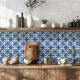 Elegant ceramic wall tile featuring a timeless Mediterranean blue and white geometric floral pattern. Inspired by Portuguese azulejo and Italian coastal design, this sophisticated tile is perfect for a decorative backsplash or stylish kitchen wall, adding refined coastal charm to spring and summer home décor.