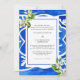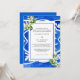 Watercolor Greenery and Flowers. Mediterranean tile. Wedding Invitation. Floral Mediterranean floral element on the back. Blue Frame. Bride Parents Listed.