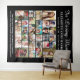 Elegant black memorial tapestry celebrating the life and times of a deceased loved one featuring "In Loving Memory" in a stylish white script, a thirty photo collage to commemorate their life, family, pets, friends, achievements, travels and joys, their name and birth and death dates. Personalise words of memorial at the bottom (initially set to "Your life was a blessing, your memory a treasure. You are loved beyond words and missed beyond measure").