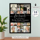 Celebrate the life of your loved one in an easy-to-create photo memory display poster print featuring a photo collage template of 24 square pictures for pictures through the years in memory of someone special at a funeral memorial service or Celebration of Life event. The elegant minimalist black and white design features modern handwritten script typography. All text font styles, colours and background colour are fully editable. OPTIONS: The sample is shown in a 20x28" size on Value Paper (Matte); other standard and custom print sizes and paper quality, Instant Digital Download file for printing locally or transferring the design to a foam board, banner, canvas or other product options are available on the ordering page. RESIZING TIP: Choose Custom Size for even borders by changing the height and width proportionately AFTER clicking the UNLOCK icon (looks like a chain link). ASSISTANCE: For help with design modification or personalisation, colour change, resizing or transferring the design, contact the designer BEFORE ORDERING via the Zazzle Chat MESSAGE tab or email makeitaboutyoustore@gmail.com.