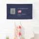 Elegant Memorial or Funeral banner with American flag to honour veterans or others. In Memoriam and editable photo, name, and date on dark blue background (or change background if you like). Flag of the United States in the centre. Edit name and dates and change out colour the photo template with a photo of the person being honoured. Can be kept by the family to save as a keepsake.