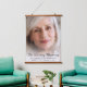 Elegant memorial hanging tapestry to remember and celebrate the life of a departed loved one featuring their photo portrait overlayed with In Loving Memory in a stylish script, their name and birth and death dates.