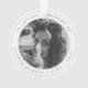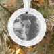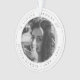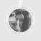 Elegant, chic funeral christmas tree ornament to celebrate the memory of your loved one in a modern minimalist design style on a simple clean white background. The design can easily be personalised with your own photo and text to create a special tribute for your loved one's funeral, memorial or celebration of life. The image shown is for illustration purposes only to be replaced with your own photo. The placeholder image is of a beautiful woman with dark curly hair wearing a scarf and is shot in monochrome black and white.