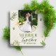 This beautiful and festive Christmas card with a custom photo is perfect for sending your warmest wishes to friends and family. The card features a design of green leaves and yellow flowers on a background, creating a sophisticated and elegant look. The words "Merrier Together" are written in a cheerful font, adding a touch of joy to the card.