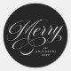 Elegant Merry Calligraphy Script Black Holiday Classic Round Sticker