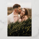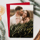 Elegant holiday card featuring your vertical photo with "Merry" displayed in a gold foil calligraphy script overlay. Personalise the front of the gold foil script holiday card by adding your name below. The holiday photo card reverses to a subtle white snow pattern with a red background (or colour of your choice).