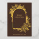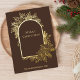 Send a greeting of pure elegance this holiday season! This luxurious Christmas card features a rich, deep brown background beautifully adorned with a stunning, gold foil botanical illustration. An ornate arch, intricately detailed with poinsettias, berries, and evergreen foliage, frames the central "Merry Christmas" message.
