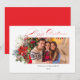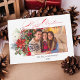 Elegant Merry Christmas Calligraphy Floral Photo Holiday Card