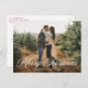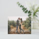 Modern holiday postcard featuring your horizontal photo with "Merry Christmas" displayed in a bold white calligraphy script overlay. Personalise the front of the Christmas photo postcard with your family name and the year. The postcard reverses to display your return address and message in red lettering.