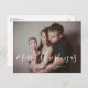 I had already ordered 5x7 Christmas cards as I usually do, but then I needed some unbudgeted extras and realized I could use postcards and save a lot of the cost! I hadn’t previously considered postcards for my Christmas cards because I used them for my wedding save the dates a year ago and the post office machines got the designs all dirty (black streaks across our engagement pictures weren’t pretty!).