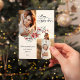 Your holiday photo greeting will make a lasting impression with this unique design featuring two arch-shaped photo templates (vertically orientated works best) with gold borders, a lovely spray of watercolor winter botanicals in red and green, custom "Merry Christmas" text graphic in an elegant flowing calligraphy font and editable text fields on a buff background. The colour of the text graphic can be changed in the design editor. The back features a text field and additional arch photo template.