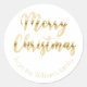 Elegant Merry Christmas metallic gold look white Classic Round Sticker