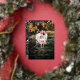 Get in the spirit with this elegant script calligraphy family photo real foil (gold, silver, or rose gold) holiday card! Modern watercolor foliage branches with berries, holly, pine, cotton, and eucalyptus on muted earth tones elevate this whimsical and festive card design on the back.