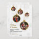 This festive Christmas invitation features a beautiful collection of photos framed inside gold-trimmed hanging ornaments, creating a warm and joyful holiday collage. Soft grey snowflakes decorate the background, adding a subtle winter charm. The elegant “Merry Christmas” script pairs perfectly with the clean, modern typography below, offering space for a heartfelt holiday message and family signature. With its blend of luxury gold accents and cozy seasonal imagery, this design is perfect for inviting loved ones to celebrate the magic of the holidays.
