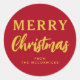 Elegant Merry Christmas Red Gold Script Custom Classic Round Sticker