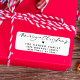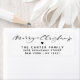 Add a festive and elegant touch to your holiday cards and gifts with this personalized return address label. The design features a flowing “Merry Christmas” script accented by a small heart, with your family name and address neatly displayed below.