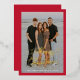 Introducing the Elegant Merry Christmas Red and Gold Foil Script holiday photo card, a beautifully simple and modern way to send holiday cheer. Featuring your vertical photo framed in red, the card displays "Merry Christmas" in elegant gold foil calligraphy overlaying the image. Customise with your name and the year in white lettering. The back showcases a horizontal photo with space for a personal message below. Perfect for sharing your favourite holiday moments in a stylish, sophisticated design!