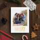 Elegant Merry Christmas Script Two Photo Foil Holiday Postcard