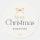 Elegant Merry Christmas Sticker with Gold Bow