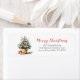 Our wonderful little Christmas tree in a gold pot is elegant and looks great for the holiday season. It is as cute as can be. We love the shiny gold and red ornaments, dusting with snow, and red-ribboned bows on presents ready to be given. All done in watercolor of vintage origin, but you wouldn’t know it because it looks so modern and trendy. We hope you love it too and will enjoy these “Merry Christmas” return address labels for your letters and gift packages that you send to your relatives and friends this wintertime.